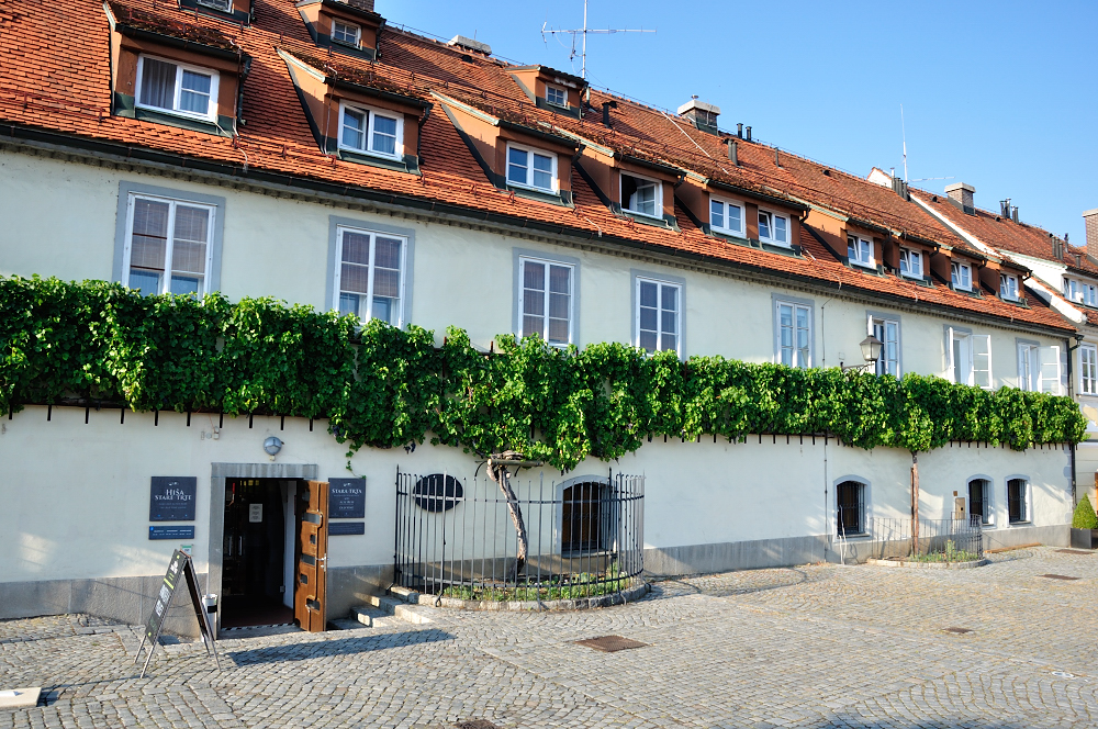 A właściwie najstarsza żyjąca winorośl na świecie. Liczy sobie już 440 lat. W roku 2004 została wpisana do Księgi Rekordów Guinnessa. Czym ucieszyła styryjskie serca i zyskała międzynarodową sławę. Od 1995 roku prowadzony jest rejestr miejsc, gdzie została zasadzona winorośl pochodząca z łozy najstarszej na świecie. Wśród krajów z całego świata jest również Polska. W 2003 roku zasadzono jej pnącza w Malborku. Oprócz naszego kraju „klony” starej winorośli rosną również w: Austrii, Francji, Japonii, Niemczech, Australii, Luskemburgu, Danii, Chorwacji, Bośni i Hercegowinie, Szwajcarii, Hiszpanii, na Malcie, Serbii, Izraelu, na Węgrzech oraz Watykanie. Akcja światowej inwazji staruszki z Mariboru przybiera na sile i pomaga promować Słowenię jako kraj winiarski. W dodatku nie jest to zagraniczny szczep, jakiś pospolity chardonnay czy riesling, tylko jeden z najstarszych słoweńskich szczepów – žametna črnina albo modra kavčina (obie nazwy są poprawne). Wchodzi w skład narodowego cuvee zwanego cviček, które jest produkowane jedynie w Słowenii, a dokładniej w rejonie Posavja.