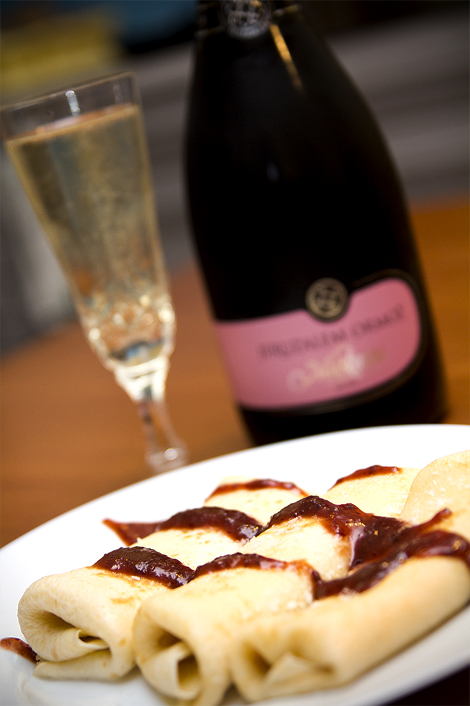 Po raz kolejny wypróbowaliśmy połączenie aromatycznego wina z daniem na bazie ciasta i twarogu. Tym razem jednak połączenie jest dość bezpieczne: naleśniki kokosowe + muškatna penina (o peninach pisaliśmy tutaj). Oba elementy są bowiem dość tolerancyjne przy łączeniu. Naleśniki można podać z najróżniejszymi rodzajami wina – białymi, czerwonymi i różowymi,jak również słodkimi i wytrawnymi. Podobnie, penina może towarzyszyć wszelkim rodzajom potraw: jako aperitif, do przystawek, do dania głównego, do deseru, po posiłku, czy zupełnie samodzielnie.