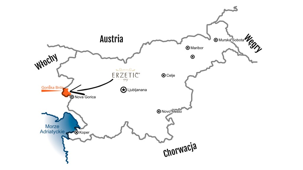 Sukces win z Goriška brda to temat na dłuższą opowieść. Faktem jest, że tutejsi winiarze wyznaczają standardy dla całego słoweńskiego winiarstwa. Choć region ten wydaje się niewielki, to ilość winnic jest rzeczywiście zdumiewająca. Właściwie wszystkie stoki są zajęte przez winnice, co wraz z ukształtowaniem terenu daje wprost bajkowy krajobraz. Goriška brda, po włoskiej stronie granicy zwany Collio, odnosi się do wzgórz nieopodal miast Gorycja (po włoskiej stronie) oraz Nowa Gorycja (po słoweńskiej). Nazwa tego regionu tłumaczona na język polski brzmiałaby Wzgórza Gorycjańskie. Brzmi ładnie, więc tej spolszczonej wersji będę się trzymał, choć w Polsce z niereformowalnym uporem używa się nazwy włoskiej.