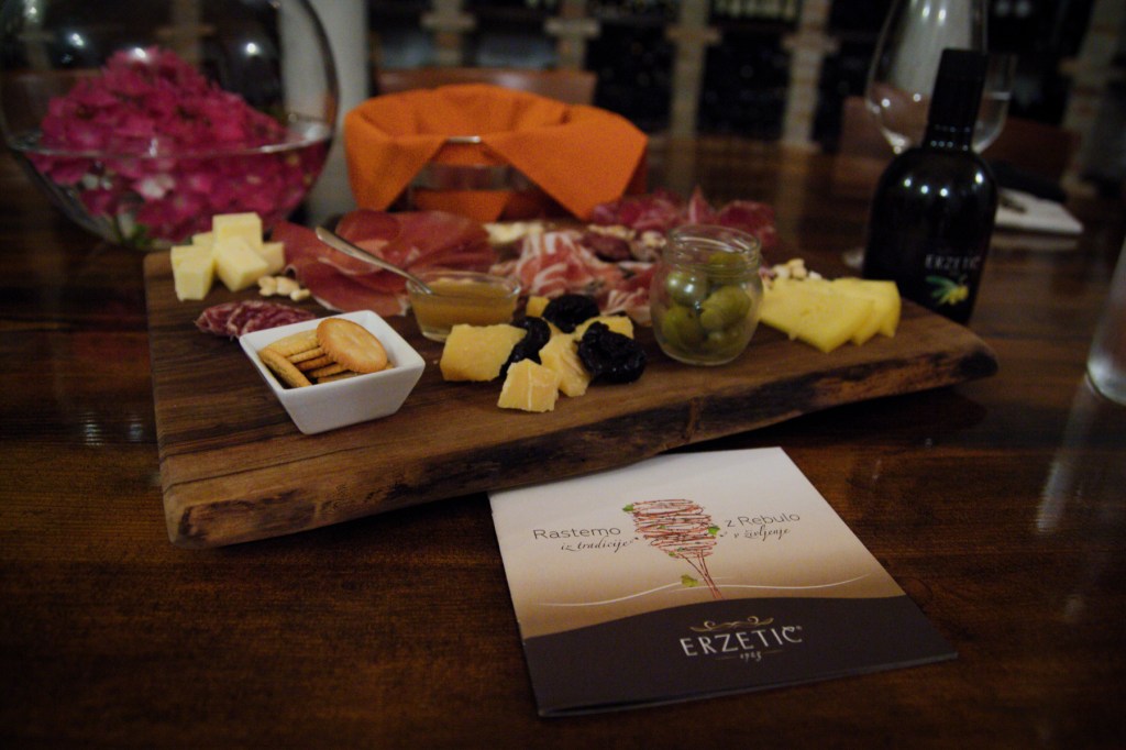 Wina wytwarzane w winnicy rodziny Erzetič są zaskakująco świeże, zważywszy na to, że Wzgórza Gorycjańskie są jednym z najcieplejszych regionów w Słowenii. Bliskość Alp daje o sobie znać. O ile zwykle dość sceptycznie podchodzę do win musujących z regionu Przymorza (Primorje), to muszę przyznać, że penina Sentio zrobiła na mnie olbrzymie wrażenie. To wino musujące powstałe z odmian rebula (80%) i chardonnay (20%) metodą klasyczną. Zbiór winogron odbywa się bardzo wcześnie, bo zwykle jest to połowa sierpnia. Wino dojrzewało na osadzie 5 lat! To czuć. Jest bardzo delikatne, a liczne bąbelki zamieniają się w ustach w piankę. Równie udana jest rebula (ribolla gialla) z 2019 roku, czyli wino z głównego szczepu w winnicy. Jest zaskakująco aromatyczne (owoce egzotyczne). Jest to nietypowe, gdyż rebulę zazwyczaj charakteryzuje nie aromat, a pełność. W smaku bardzo gładka, przyjemna i świeża. Bardzo dobrze ułożona, przez co dla niektórych może być nudna, ale konserwatywni winomaniacy będą zachwyceni. Kolejnym ciekawym winem był sivi pinot 2018 (pinot gris), który swoim delikatnym łososiowym kolorem wskazywał na macerację skórek. Również to wino jest bardzo zrównoważone, delikatne, spokojne i świeże. W ustach miękkość nadają mu jogurtowe nuty, natomiast finisz jest owocowy. W końcu po tym miłym początku Andrej otworzył wino dla którego przyjechałem. Pokalca 2017, czyli czarna rebula, jedyna ciemna endemiczna odmiana Wzgórz Gorycjańskich. Kolor wina bardzo przypomina refoška, jest ciemno bordowe z fioletowymi refleksami. W aromacie czuć ciemne owoce, zioła i przede wszystkim mielony pieprz. W ustach bardzo przyjemne, świeże, owocowe. Wciąż zielone taniny nie przeszkadzają (nie ma ich dużo), a jedynie dodają pikanterii.