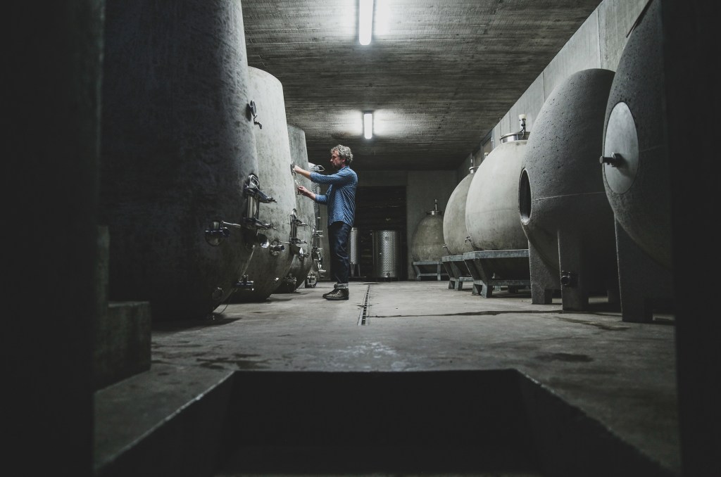 Największą popularnością cieszą się jaja z betonu. W Słowenii są produkowane przez dwie firmy: Eggoist oraz Wine Egg. Eggoist swoje pierwsze prototypy dał na testy w 2018 roku do wiodących słoweńskich winnic: Batič, Burja, Movia i Jakončič. Firma Wine Egg z kolei opatentowała swoją własną technologię na produkcję jaja z jednej części, bez zszywania dwóch elementów. Jest to o tyle ważne, że jaja od Wine Egg produkowane są ze specjalnego eko betonu, a do łączenia trzeba używać chemii do klejenia i izolacji szwu. Firma w swojej filozofii eko idzie dalej i nawet woda oraz piasek pochodzą z winnic klientów. Pierwsze eko betonowe jaja trafiły na testy w roku 2015. Tak jak w przypadku Eggoist, trafiły do czołowych słoweńskich winnic: Ducal, Marjan Simčič, Burja, Štemberger. Po raz pierwszy wina z betonowego jaja próbowałem w 2019 roku. Był to laški rizling z winnicy Ducal. Wino urzekało swoją miękkością, świeżością i harmonią. Było po prostu zachwycające. Chyba podobne efekty osiągnęli także inni winiarze, bo popularność jajowatych zbiorników cały czas rośnie. Właściwości betonu łączą zalety drewna i stali nierdzewnej. Podobnie jak zbiorniki stalowe, beton nie wpływa na smak wina, co jest bardzo ważne dla winiarzy podkreślających potencjał swoich siedlisk. Jednak w przeciwieństwie do stalowych zbiorników, beton pozwala winu oddychać. Pory w betonie są na tyle duże, że wino dojrzewa dwa razy szybciej niż w beczce drewnianej. Co również istotne, w przeciwieństwie do drewna, beton nie chłonie („nie pije”) wina, nie trzeba więc go dolewać w trakcie dojrzewania.