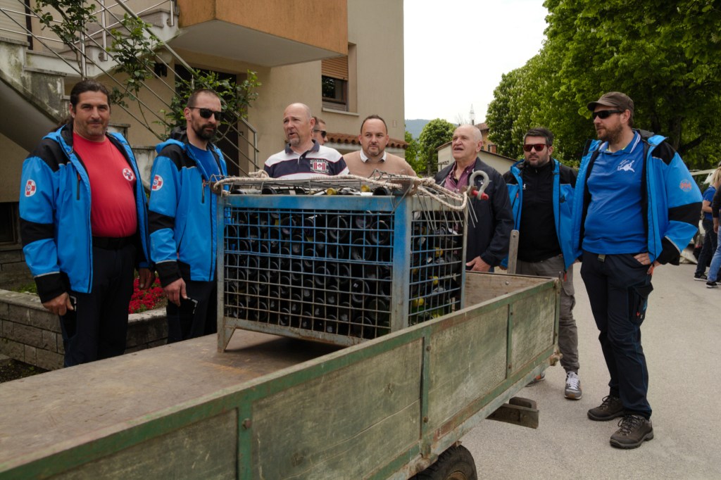 Na początku maja zostałem zaproszony na nietypową uroczystość w naszej gminie. Po 15 miesiącach kąpieli na powierzchnię miały zostać wyciągnięte wina zanurzone w nurcie rzeki Vipavy. Około 100 butelek lokalnych winiarzy zostało opuszczonych na dno rzeki z inicjatywy lokalnego stowarzyszenia płetwonurków. Nurkowie do współpracy zaprosili lokalnych producentów wina, a patronat nad całym przedsięwzięciem objął wójt naszej gminy.