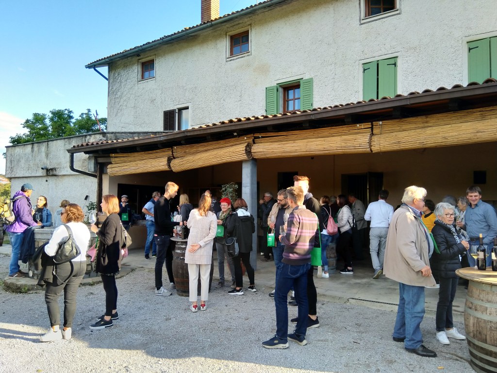 Pociąg zatrzymuje się we wsi Dornberk, gdzie zaplanowany jest tradycyjny obiad oraz degustacja win od kolejnych winiarzy. Na obiad serwowana jest jota. Jest to tradycyjna zupa regionu Północne Primorje. Najczęściej robi się ją z kiszonej kapusty i kiszonej rzepy, z dodatkiem ziemniaków, kiełbasy i fasoli. Po obiedzie podróżnych czeka kolejna degustacja. Wspaniałe wina z winnic Berce oraz Lisjak i piękne widoki na góry przed nami, sprawiają, że ciężko zebrać wycieczkę z powrotem na stajcę kolejową. W końcu jednak wszyscy wracamy na pociąg.